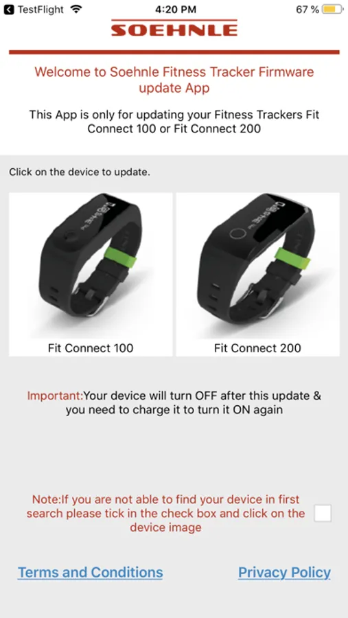 This app is only for the Soehnle Fit Connect 200 HR and Soehnle Fit Connect 100 activity tracker hardware update.