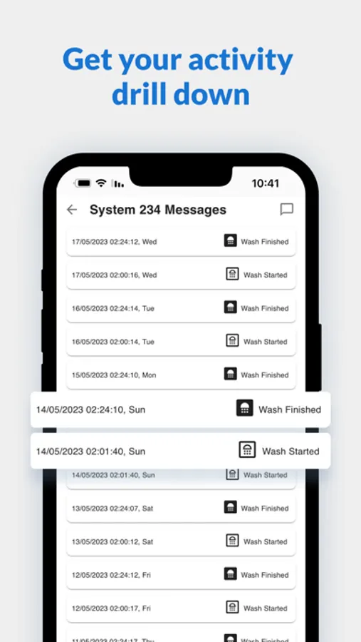 You can see your system's operation log, change washing days and hours and perform immediate online wash.