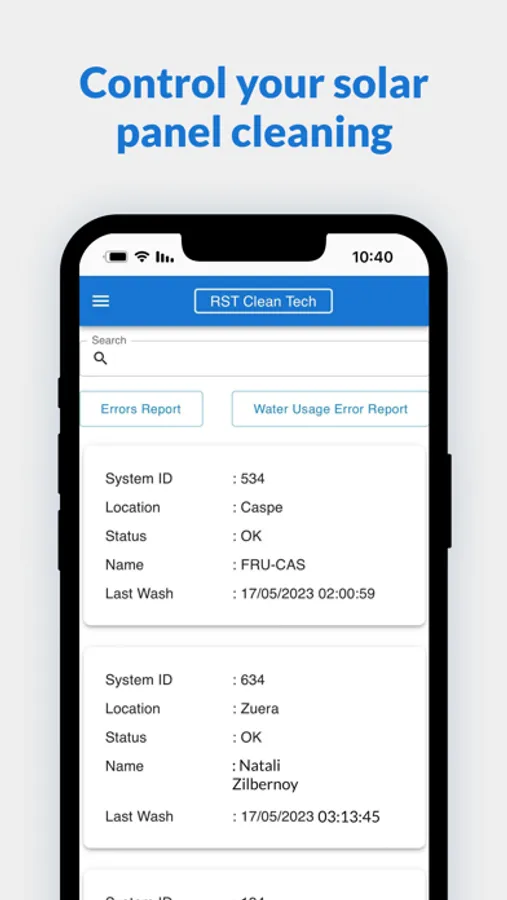 RSTCleantech application lets RST system owners and service support teams to monitor, operate and set/change system settings directly from their mobile device.