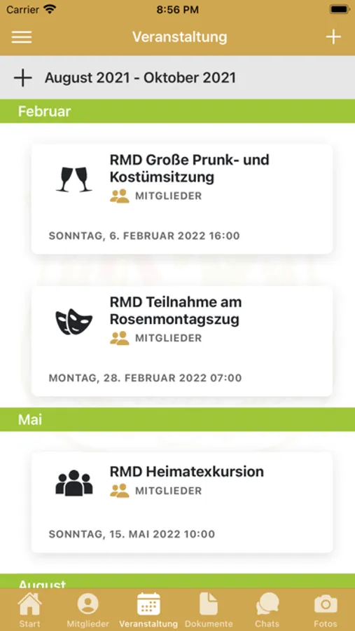 Organisieren Sie Ihr Verbands- und Vereinsleben vollumfänglich digital: Verwaltung aller Mitgliederdaten, Erstellung von Projektgruppen, Organisation von Veranstaltungen mit Zu- und Absagen, Einzel-, Gruppen und Organisations-Chat, Bereitstellung von Dokumenten, öffentliche Fotopinwand und vieles mehr...