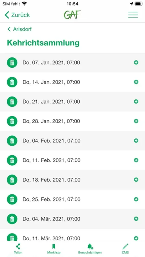 Entsorgungs- und Recycling Kalender der Gemeinden im Verbandsgebiet des GAF: