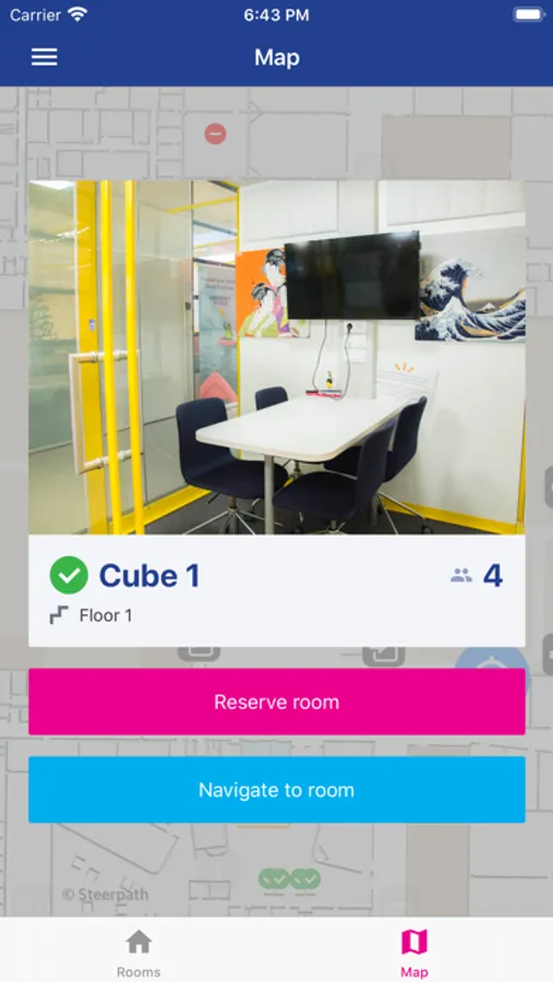 Cella includes indoor navigation to find the room you have reserved, and to see where rooms are available around university campuses.
