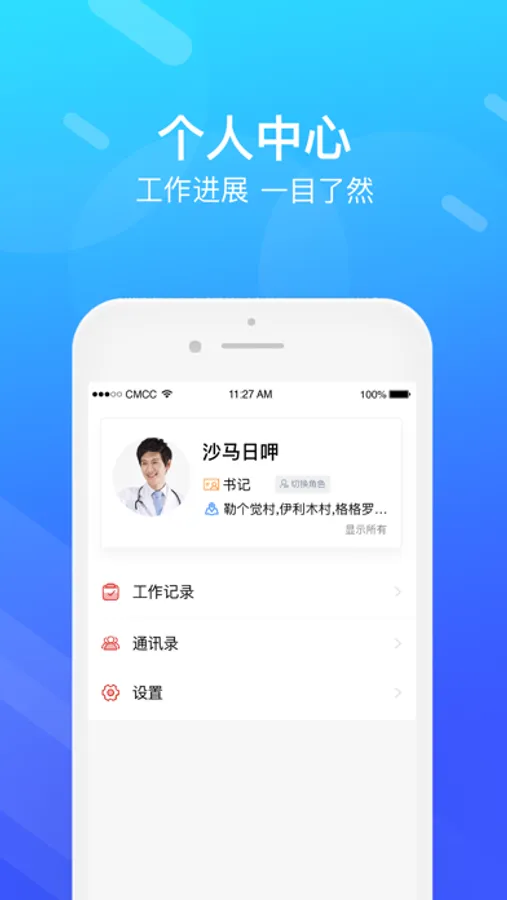 2、针对不同的用户角色,有不同的权限以及工作内容,领导能够查看下面人员的没人工作情况,也可以针对问题随时发起会话进行沟通,方便大家工作。对于职工可以实时记录上报自己的工作内容;