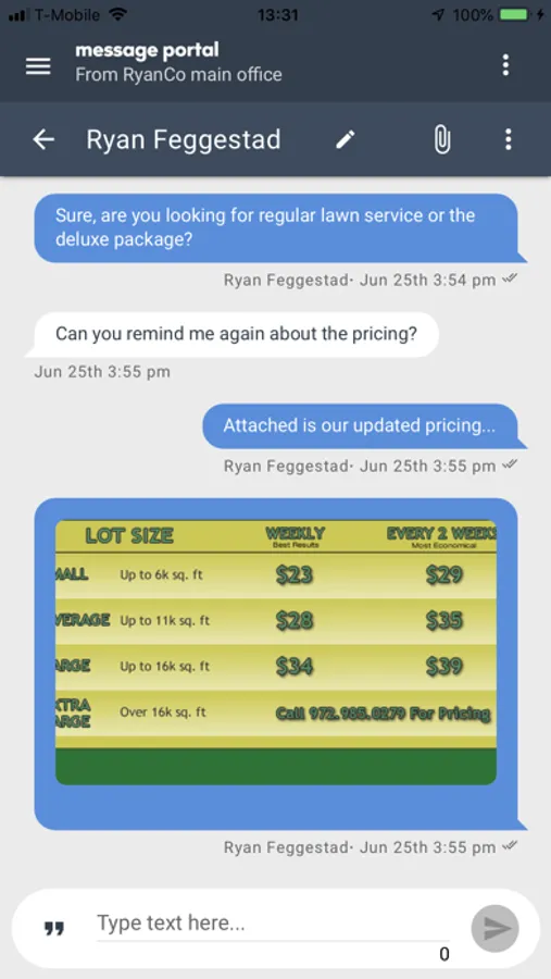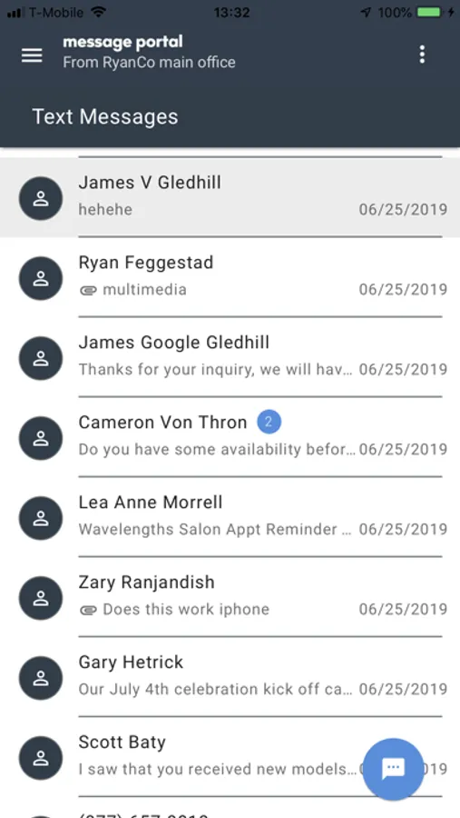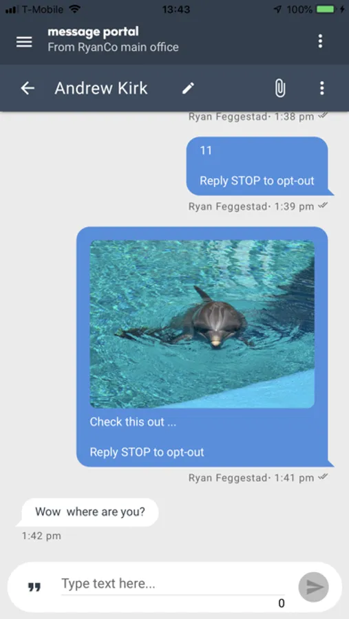 Message Portal is the mobile front-end for our complete texting service. The service unbundles your telephone numbers from specific devices. Just like an inbound call can be routed to any device through your PBX or Phone System, an inbound text can be routed to any desktop, mobile device, or tablet that is running our application. Nearly any VoIP or Landline number can be text-enabled to use our service.