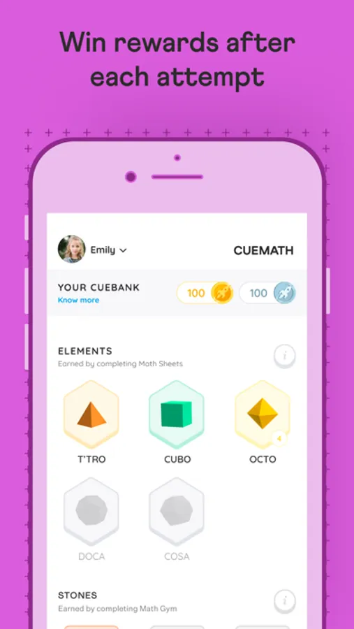 - The brain games and math games are designed to make learning interactive and fun for kids. Kids get rewarded with Cuecoins after each attempt and Math Stones after each level up.