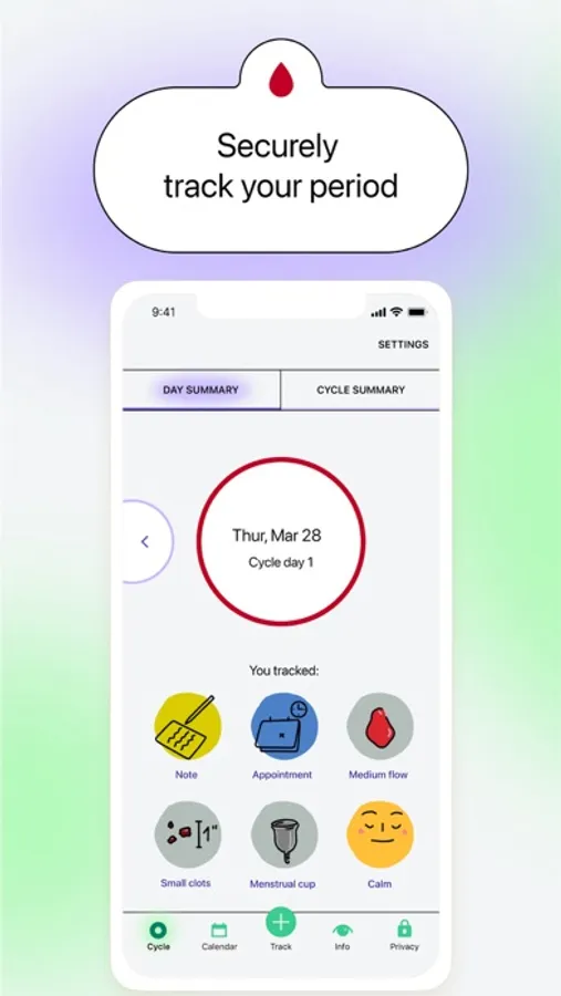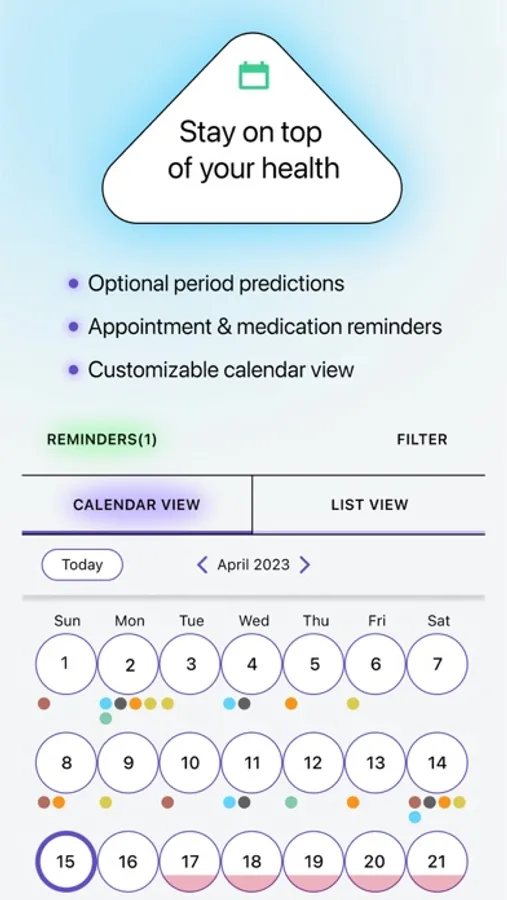 Track everything from monthly bleeding to acne, headaches, and cramps. You can also set appointment and medication reminders.