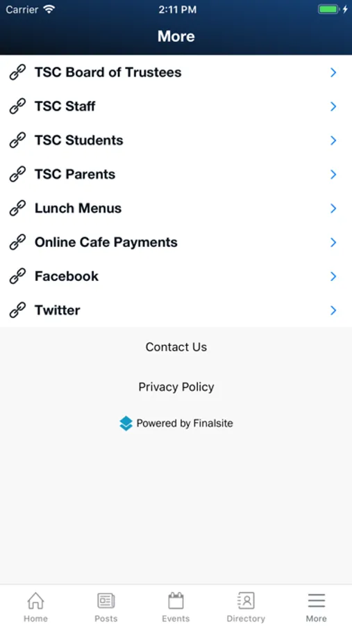 • Access links to your school’s social media pages, opening in the device’s browser or directly in the social media platform’s app