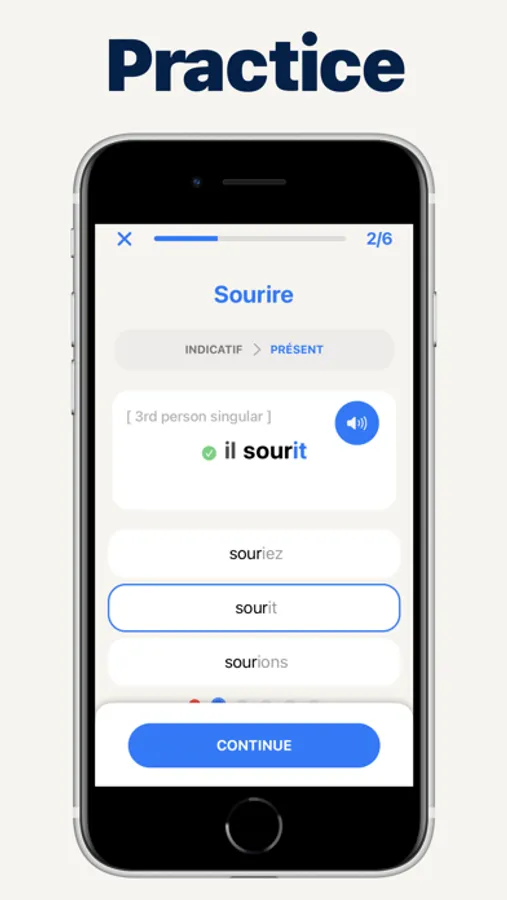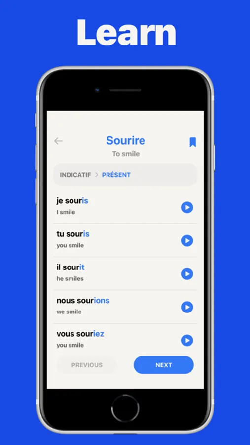 One of the most important aspects of learning French is pronunciation. With Conjuga, you can listen to the proper pronunciation of each conjugated verb, so you can improve your speaking skills and sound like a native French speaker.