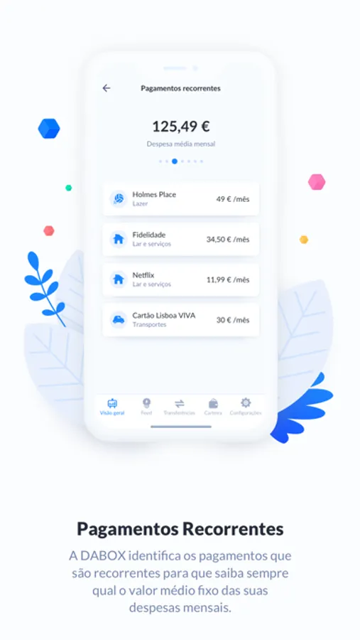 A app DABOX é o personal trainer financeiro que ajuda a “pôr em forma” a sua vida financeira, tendo em conta os seus padrões de consumo e os seus objetivos financeiros.