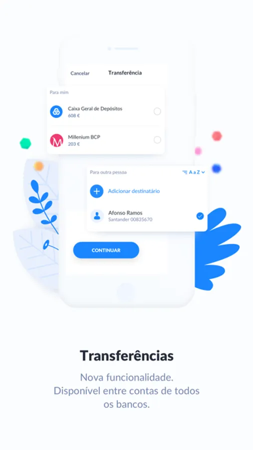 - permitindo-lhe iniciar transferências a partir de qualquer conta à ordem de qualquer um dos Bancos disponíveis na app