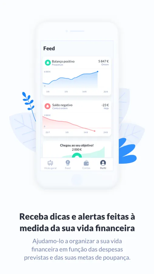 - analisando as suas finanças e apresentando-lhe dicas inteligentes e alertas personalizados em função das despesas previstas, das suas metas de poupança e dos seus objetivos