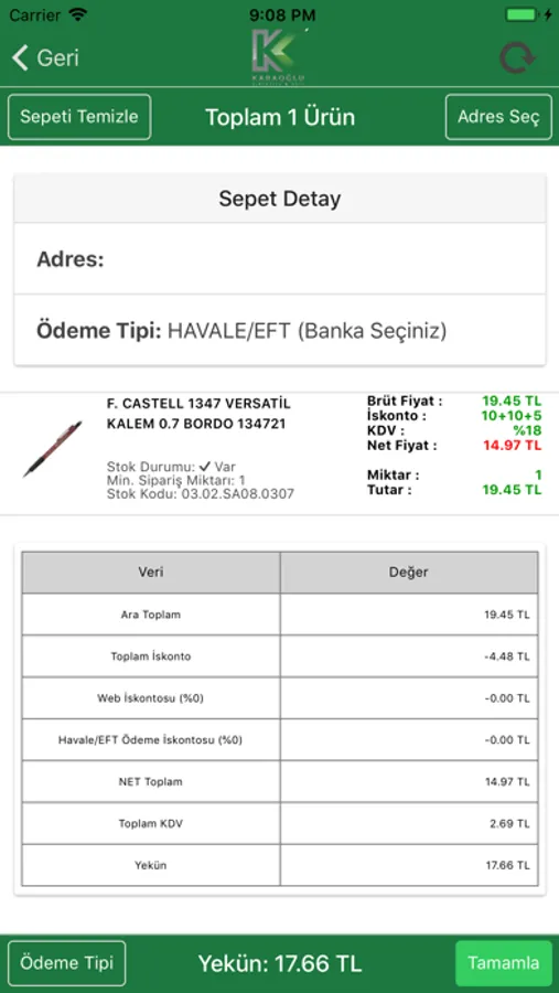 Karaoğlu Kırtasiye B2B Sisteminin Mobil Uygulaması.