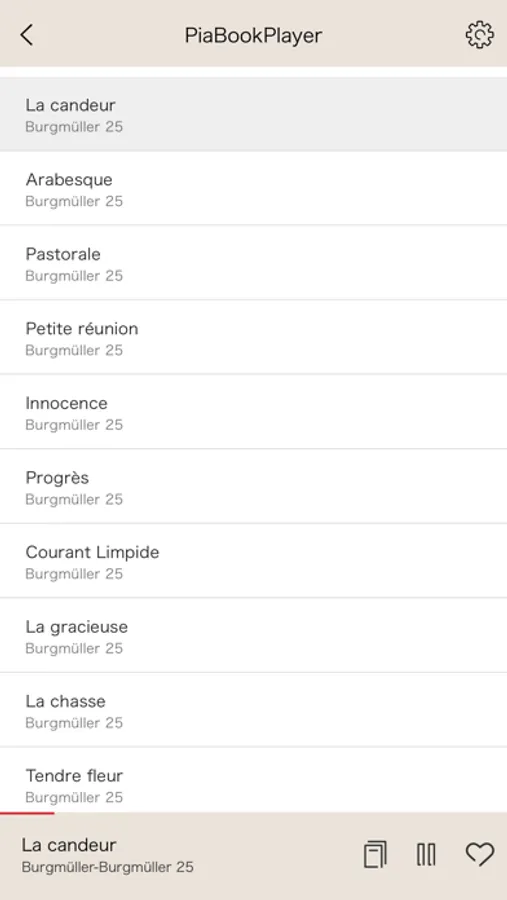 Select the lesson song/practise piece you wish to listen to using the familiar music player app interface.