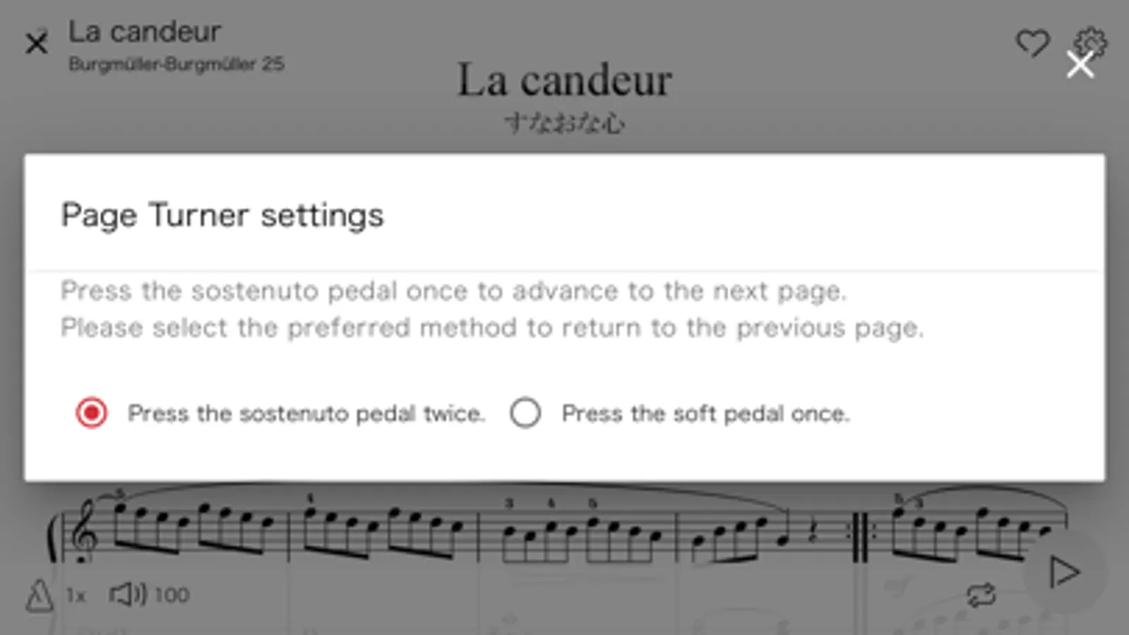 Turn pages of the musical score using the sostenuto or soft pedals, allowing players to concentrate on their performance.