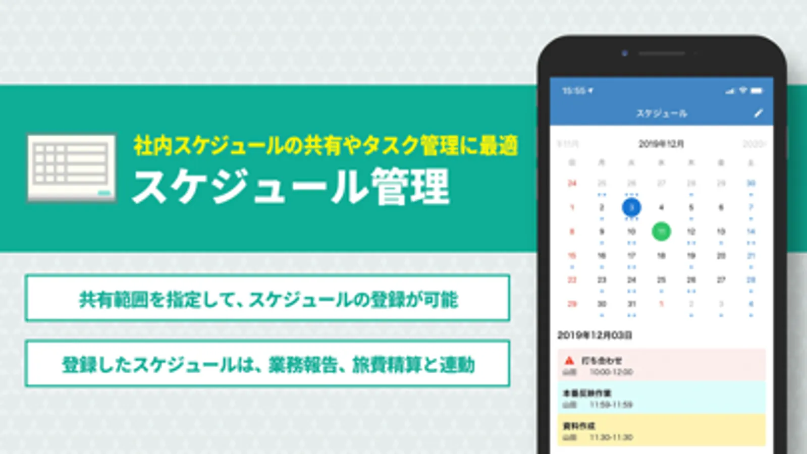 カレンダーからスケジュールの登録・共有ができます。