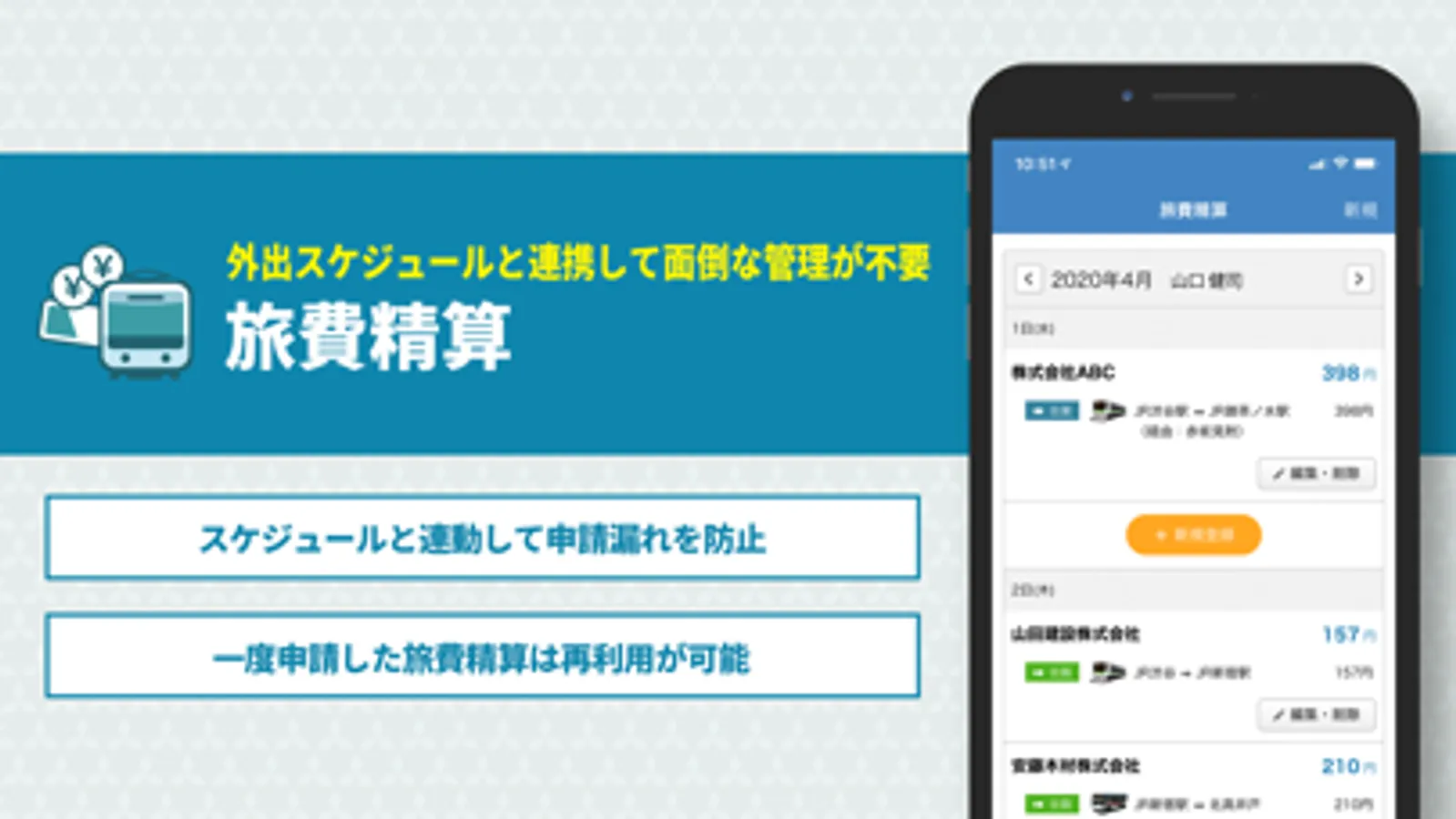 スケジュールと連動した旅費精算機能です。