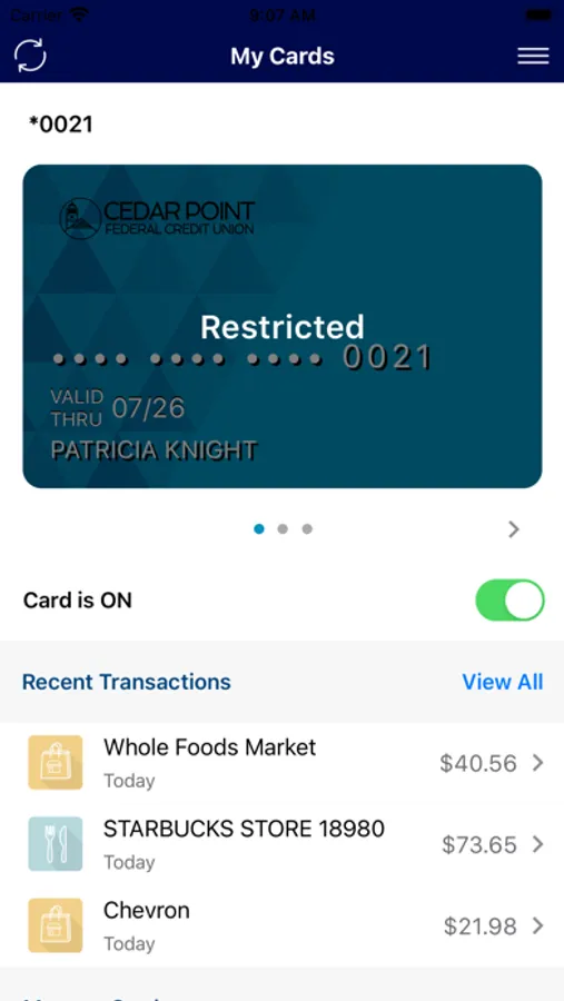 protects your debit cards by sending transaction alerts and enabling you to define when, where and how your cards are used. Download to your smartphone, then set your preferences to monitor and manage your cards.