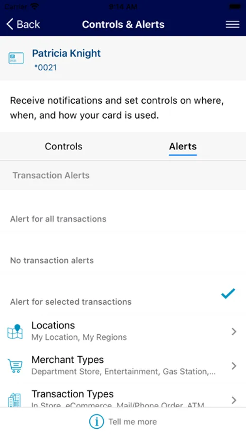 Real-time alerts for PIN and signature transactions keep you informed of your card usage to quickly detect unauthorized or fraudulent activity.