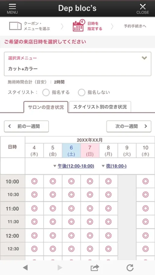 ご希望のメニュー・日時を指定して予約できます。安心してご予約ください。