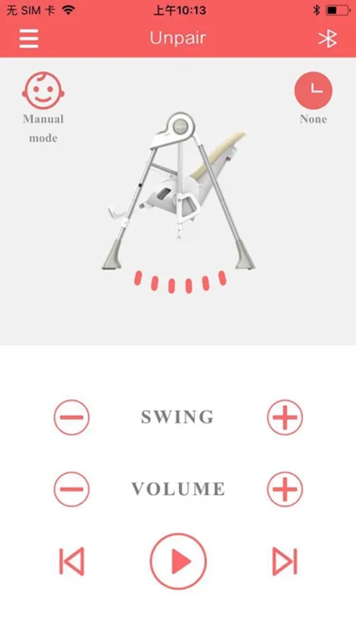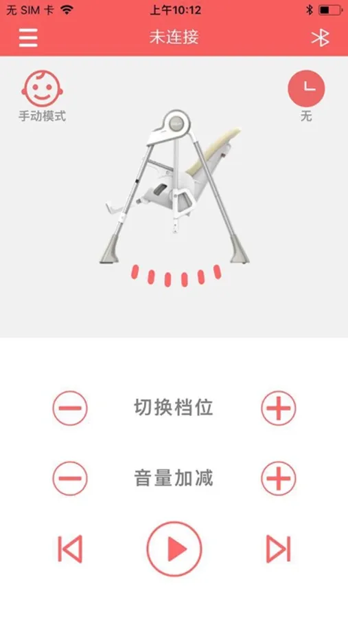 本APP通过与秋千餐椅蓝牙连接,进行摇摆控制和音乐控制,增加儿童的使用兴趣。