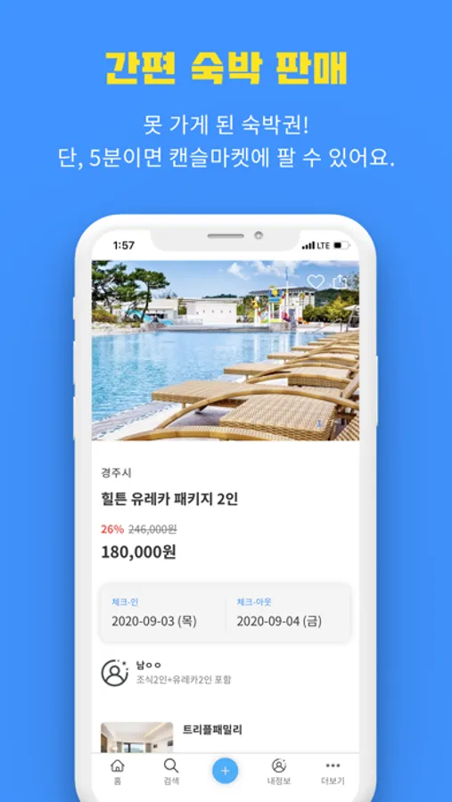 할인된 숙박권이 캔슬로 인해 한 번 더 할인된 가격으로 제공