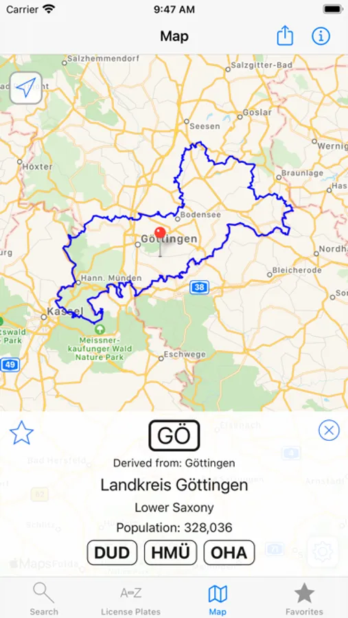 Some countries have license plates that encode the geographic location from which the vehicle comes from. This app lets you lookup the location that belongs to a certain license plate.