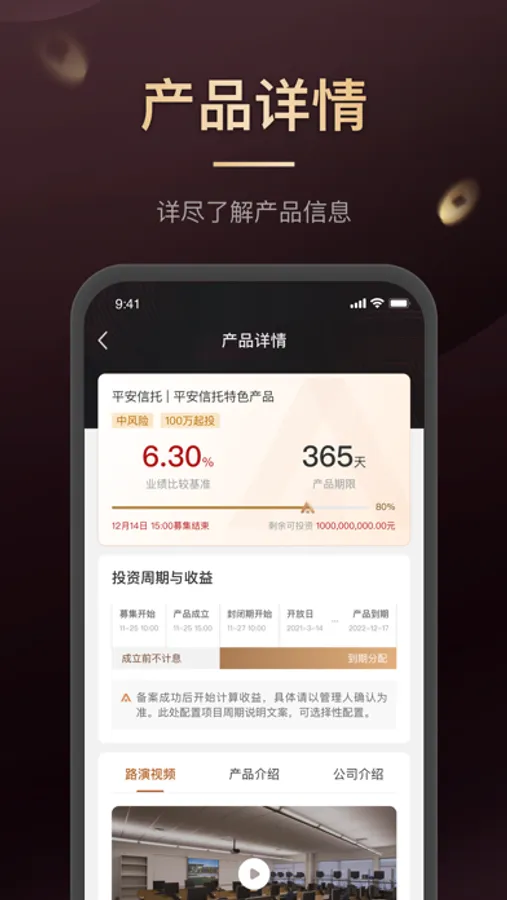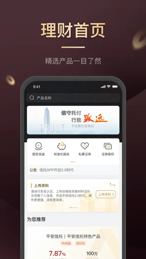 平安信托线上平台是由平安信托有限责任公司提供的移动应用程序,旨在为信托理财客户提供线上业务办理、产品推介、信息查询、视讯面签等线上服务。