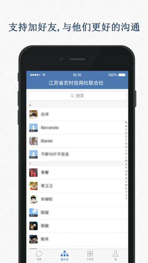 [内网存储]聊天记录、通讯录等数据存储在江苏省农村信用社联合社内网,安全可控