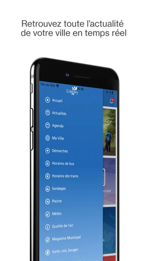 L'application de la ville de Longwy vous propose les actualités, l'agenda des manifestations, les numéros utiles des services de la mairie, des notifications en temps réels et bien plus encore... : restez connecté avec votre ville !