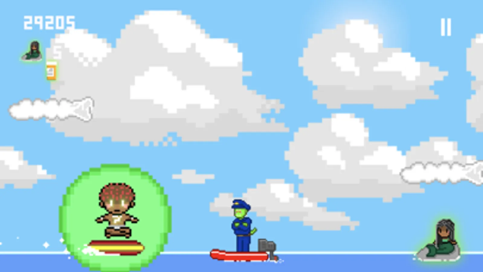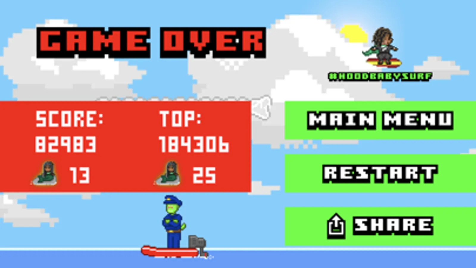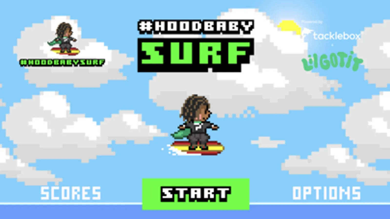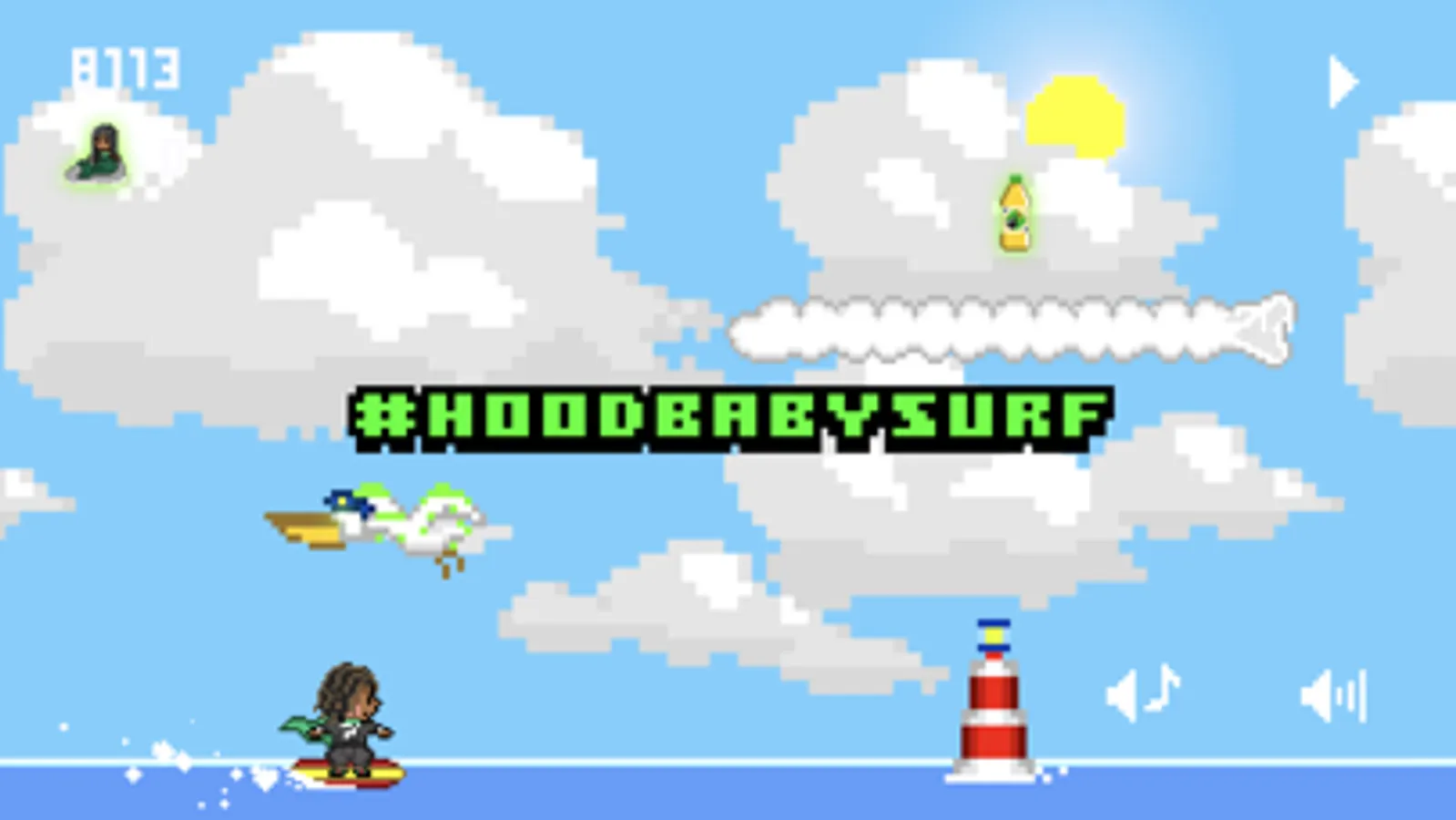 Surf the seas with Lil Gotit saving mermaids and collecting powerups in his new iOS game #HoodBabySurf.