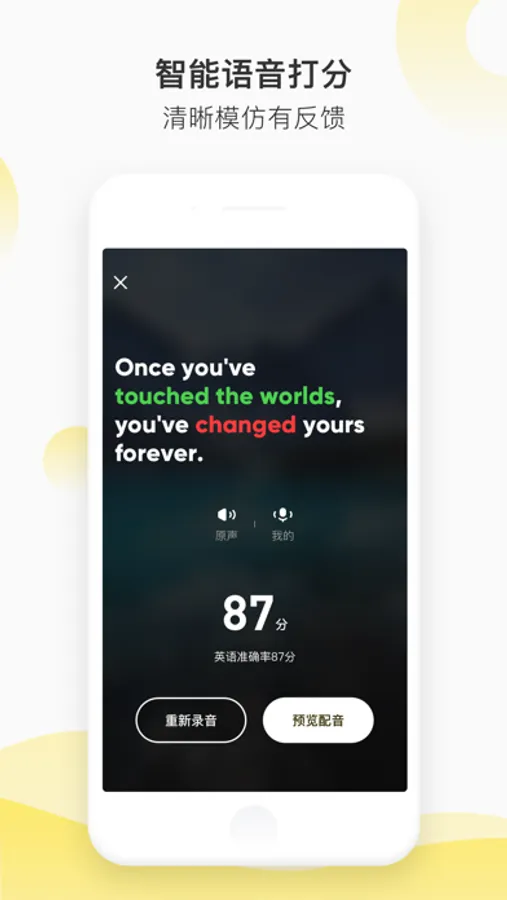 提供免费专业语音打分,在配音时准确了解自己发音准确率,纠正自身发音问题,及时发现问题根源;