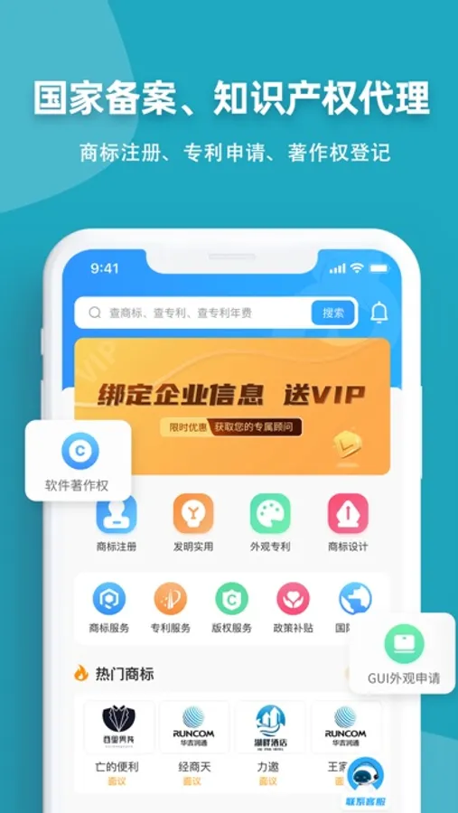 【知识产权】提供商标查询、商标注册、商标商城、商标转让等商标服务,专利查询、专利申请、专利检索、专利管理及专利商城。版权登记、软件著作权相关申请服务;另外提供知识产权项目类申请及咨询服务,企业贯标、企业认证、高新技术企业、软件产品、软件企业、知识产权贯标服务、质量体系及产品认证服务。