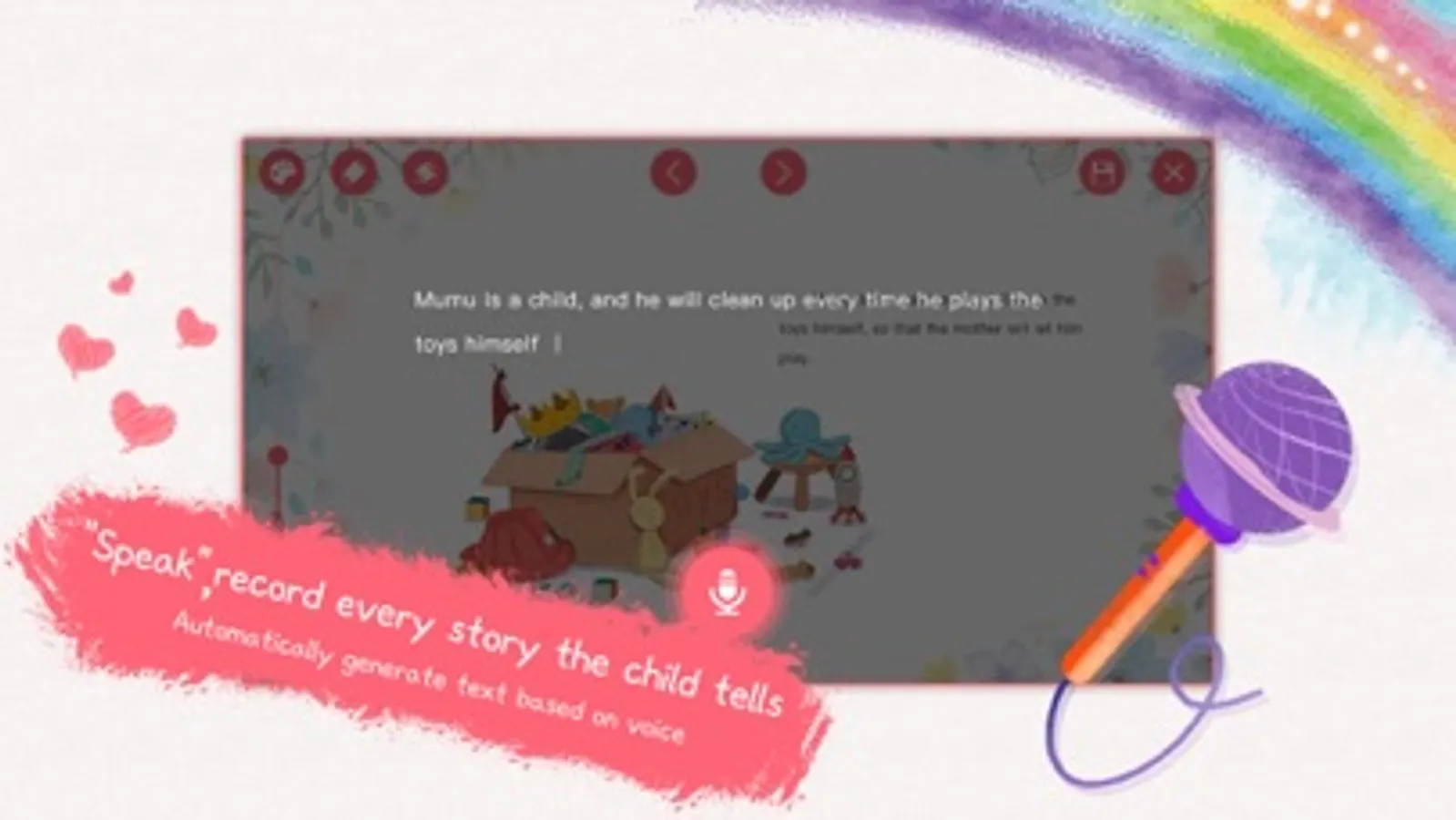 【"Painting" and "Saying"】Open app, only need to draw well, tell the story, can recognize voice into text, form picture book content, without manual input text.