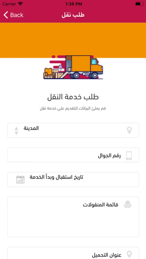 ﺗﻄﺒﻴﻖ ﺫﻛﻲ ﻳﺮﺑﻂ اﻟﻨﺎﻗﻠﻴﻦ اﻟﻤﺆﻫﻠﻴﻦ ﺑﺎﺻﺤﺎﺏ اﻟﺸﺤﻨﺎﺕ ﻟﺘﺒﺴﻴﻂ ﻋﻤﻠﻴﺔ ﻧﻘﻞ اﻷﺛﺎﺙ ﻣﻊ اﻟﻔﻚ ﻭاﻟﺘﺮﻛﻴﺐ ﻭﺫﻟﻚ ﻟﻀﻤﺎﻥ اﻟﺠﻮﺩﻩ ﻭاﻻﺳﻌﺎﺭ اﻟﻤﻨﺎﻓﺴﺔ