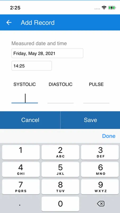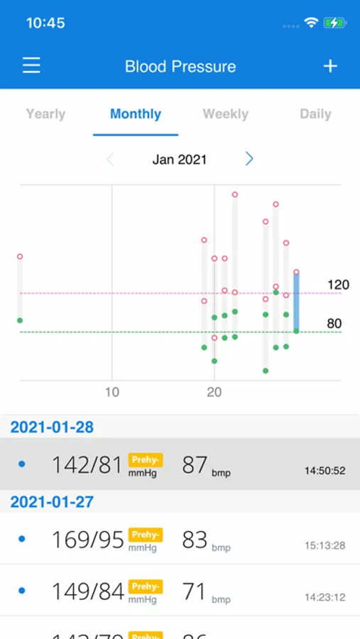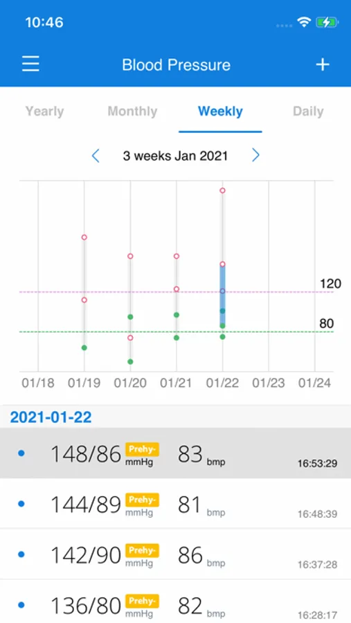 (2) Blood pressure: You can view the data in a graph/list and input the measured blood pressure data directly.