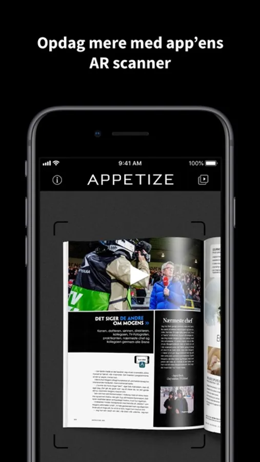 Appetize-appen giver dig mulighed for at få endnu mere viden ud af det trykte magasin. Med appen kan du med kameraet på din telefon scanne billeder og få meget mere viden gennem videoer og ekstra billeder. Du vil kunne finde konkurrencer, få ‘behind the scenes’-viden og meget meget mere. Glæd dig til en udvidet læseoplevelse!
