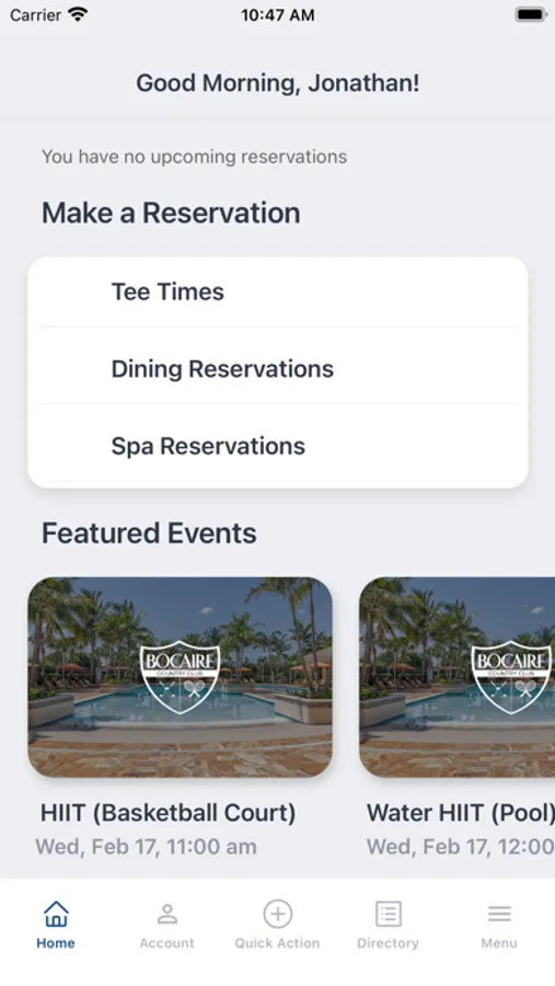 Download the Bocaire Country Club app to easily: