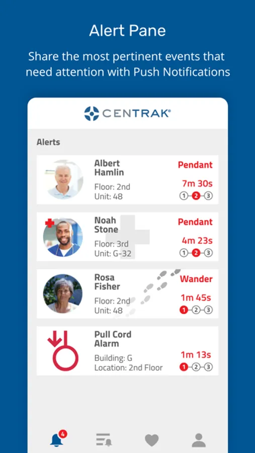 CenTrak’s TruView Alert Manager is a mobile application used to efficiently notify Caregivers and first responders to TruView Alerts and allows interaction, such as accepting, clearing, and providing description of the event.