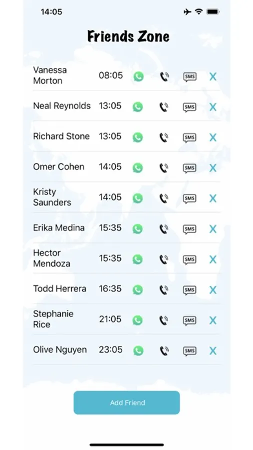 This cool app displays your friends time according to their Location - Time zone