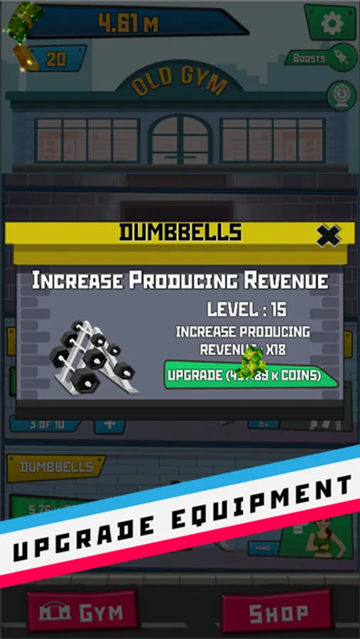 Play 'Gym Tycoon: Idle Clicker' Game and become rich. Buy and sell a variety of gym fitness machines to capture as many clients as possible. Run and expand your gym empire with strategy. Be a Billionaire, Trillionaire ... Nonillionaire, until how much you can reach!