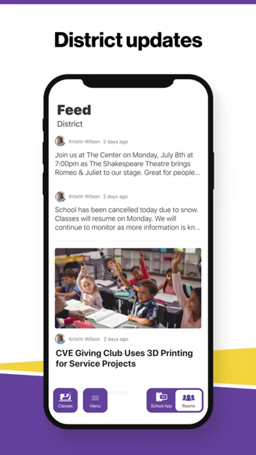 In the Live Feed is where you'll find updates from the administration about what's going on in the district right now. Whether that's celebrating a student's success, or reminding you about an upcoming deadline.