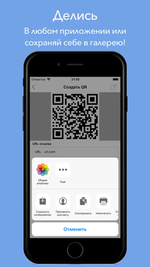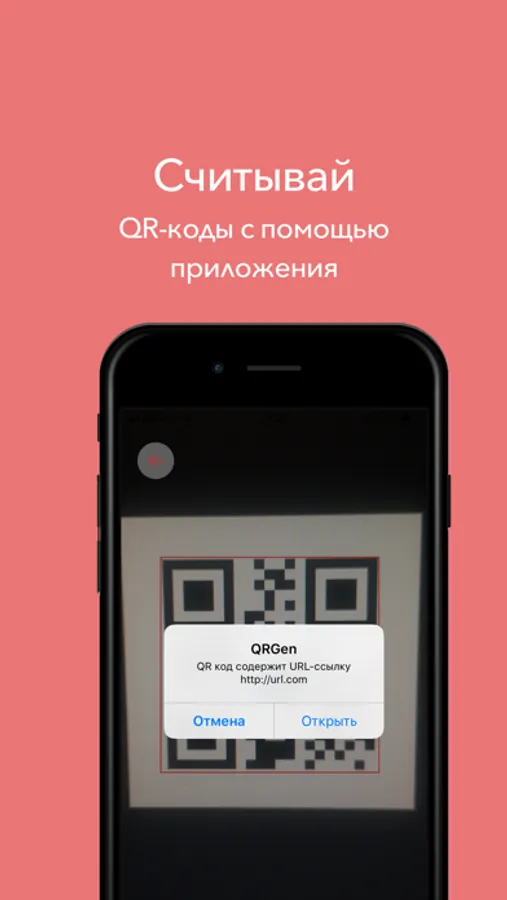 С помощью QRGen Вы сможете сканировать различные QR коды, создавать их и отправлять в любые приложения или сохранять себе в галерею!