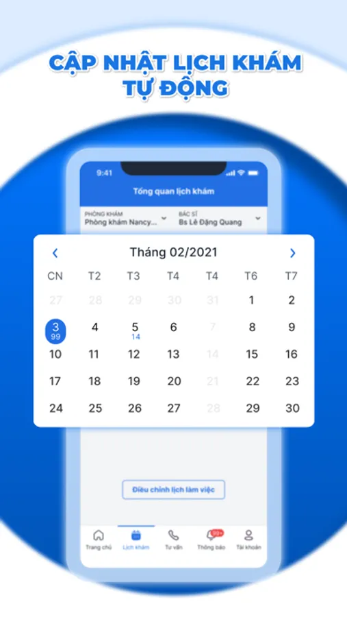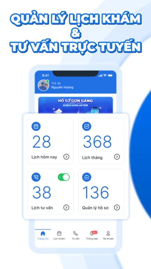 Chủ động quản lý lịch khám: với mục tiêu giảm thiểu các thủ tục rườm rà, Bác Sĩ có thể chủ động quản lý lịch khám ngay tại ứng dụng. Lịch khám luôn được thống kê trực quan trên màn hình điện thoại, Bác Sĩ có thể kiểm tra lịch theo ngày, tuần, tháng hoặc bất cứ lúc nào.