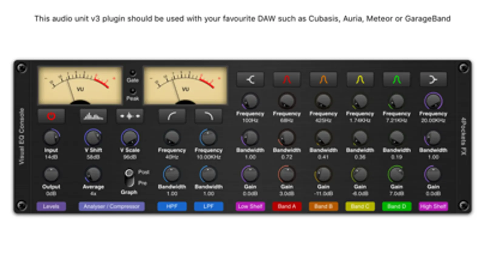 Visual EQ Console is a studio quality multi-band EQ console with the ability to analyse audio in real time giving an accurate and reliable spectrum representation of the frequency response.