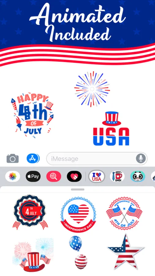 This sticker app pack is going to help you sharing your ideas with your iMessage contacts using Independence Day stickers.