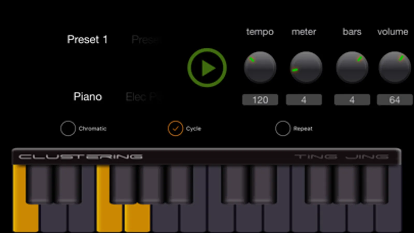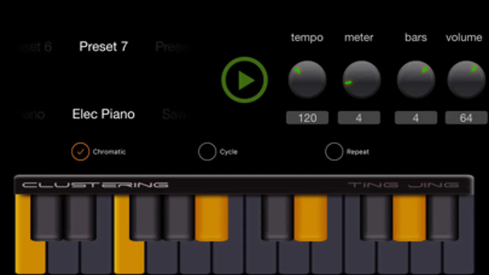 Clustering is a musical practice tool for iOS. It lets you setup a cluster (or any chordal structure) and use it for practice material.