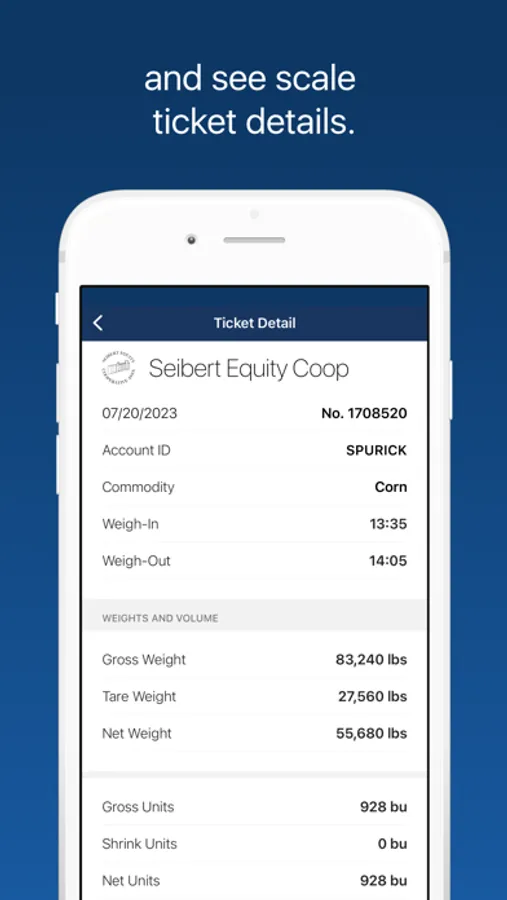 The Seibert Equity Cooperative app is an essential mobile solution that connects your operation to your grain facility, providing real-time, actionable information to help you manage and grow your business.