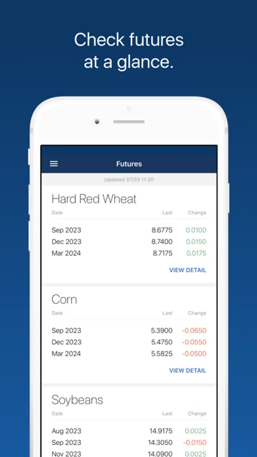 Futures: See Grains, Feed, Livestock, and Ethanol futures listed in order of your preference