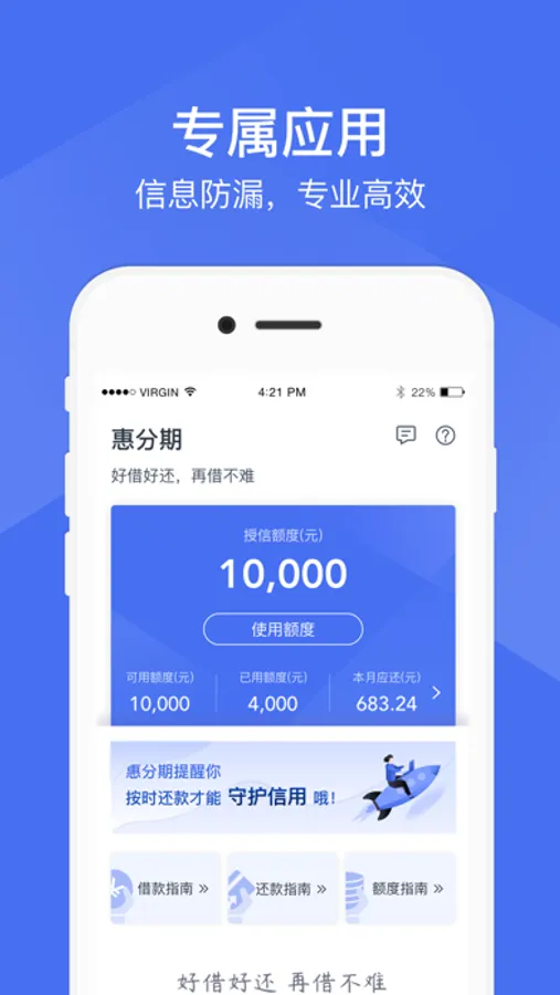 惠分期具备先进的网络安全能力,用户的信息全部保密,无忧借款。