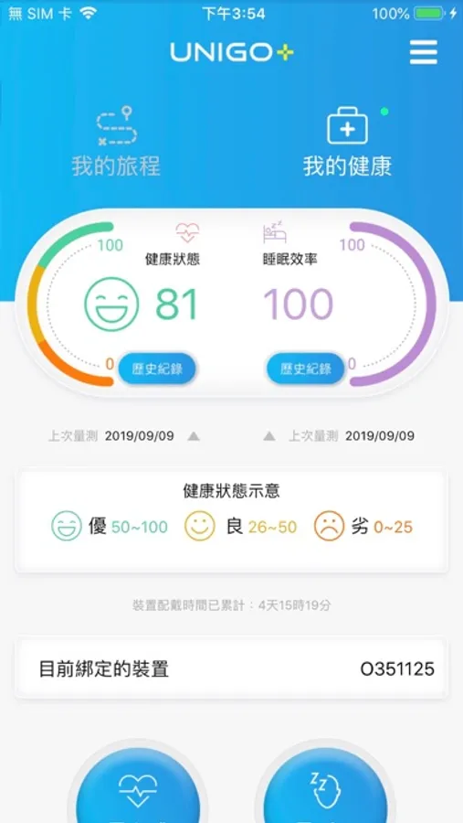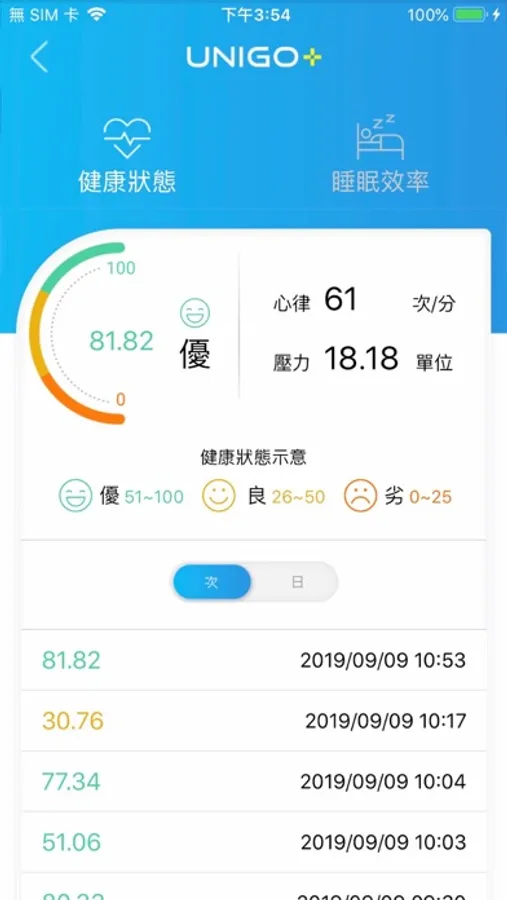 1. App將透過藍芽從您的手錶上蒐集健康數據,上傳到資料中心分析您的健康狀況,您可以在「我的健康」→「歷史紀錄」中查看這些資訊。